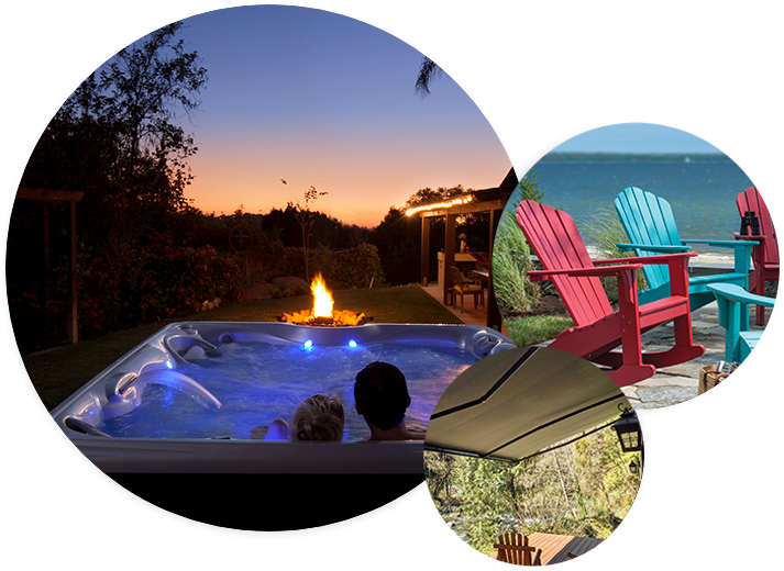Patio furniture, awnings & grills. Spa add-ons such as bluetooth, music systems, pillows, steps, handrails & cover lifters.